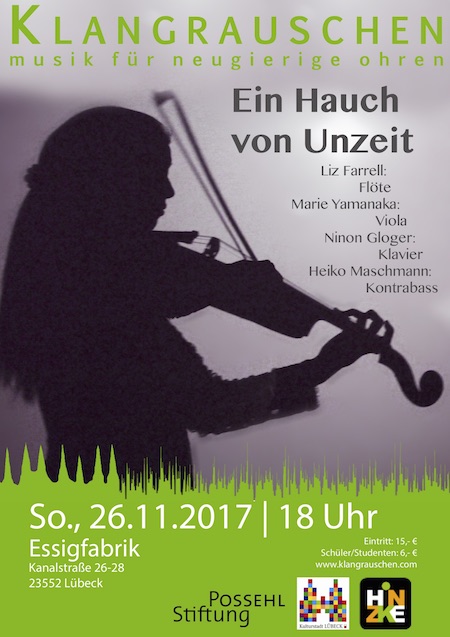 Der umtriebige Kontrabassist Heiko Maschmann ist in Lübeck kein Unbekannter, schon einige spannende Konzerte hat er in den letzten Jahren gegeben. Diesmal gesellen sich mit Liz Farrell (Flöte) und Marie Yamanaka (Viola) weitere Musiker des Philharmonischen Orchesters Kiel hinzu, den Klavierpart übernimmt Ninon Gloger, Pianistin des RADAR ensemble und künstlerische Leiterin der Konzertreihe.